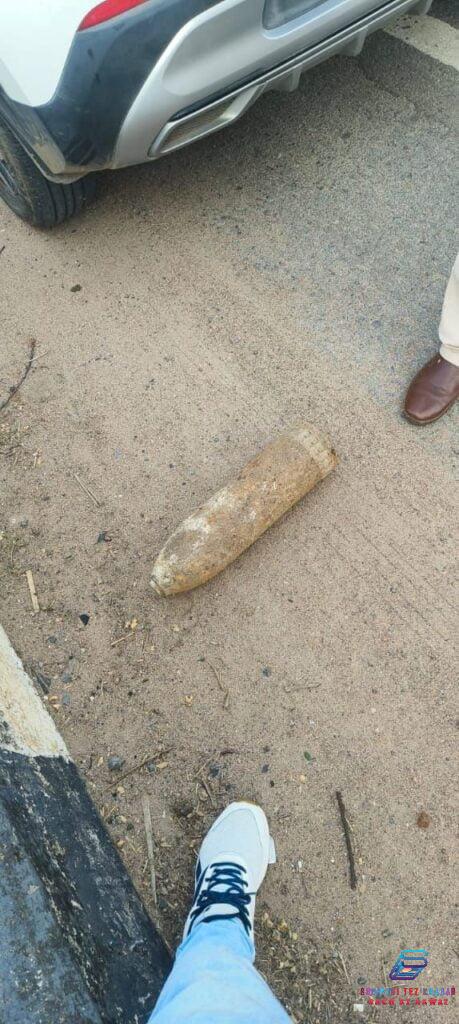 शिवपुरी। जिले के दिनारा कस्बे में धाधू पुल के पास रविवार शाम को एक बारूद का गोला पड़ा मिला। मामले की सूचना पर से मौके पर पहुंची पुलिस टीम ने उस गोले को जप्त कर आगे की कार्रवाई शुरू कर दी है।