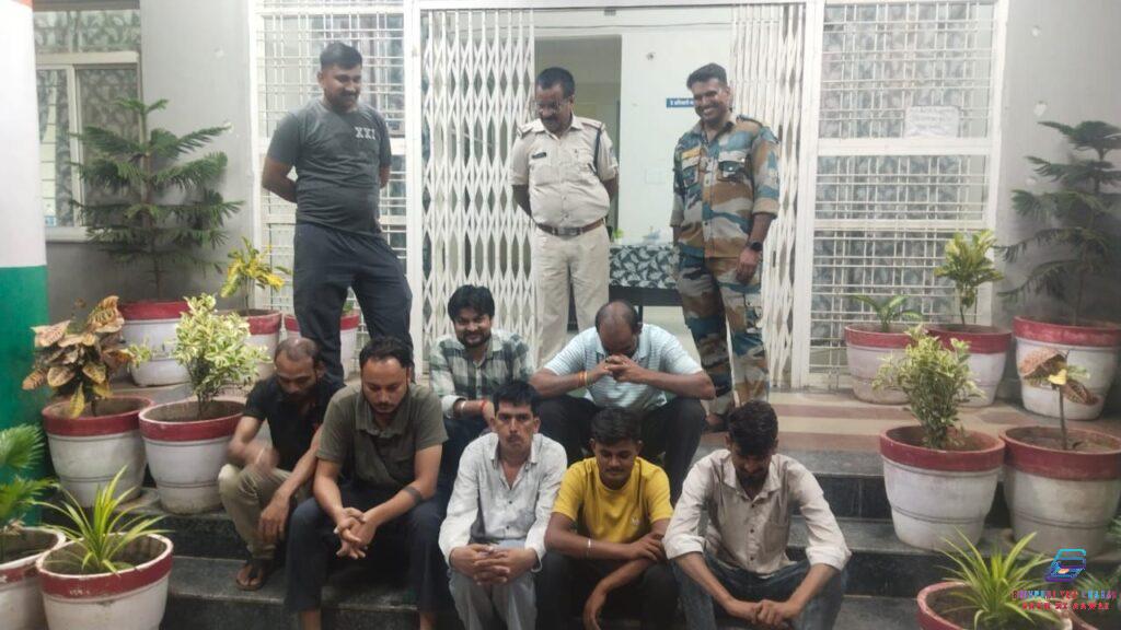 खनियांधाना। जिले की खनियांधाना पुलिस ने एक सूचना पर से बीती रात गल्ला मंडी के पास लाईट के उजाले में जुआ खेल रहे ७ जुआरियों को पकडऩे की कार्रवाई की है। जुआरियों के पास से पुलिस ने १० हजार ९५० रुपए व ताश की गड्डी जप्त की है। सभी के खिलाफ जुआ एक्ट के तहत प्रकरण दर्ज किया गया है।
